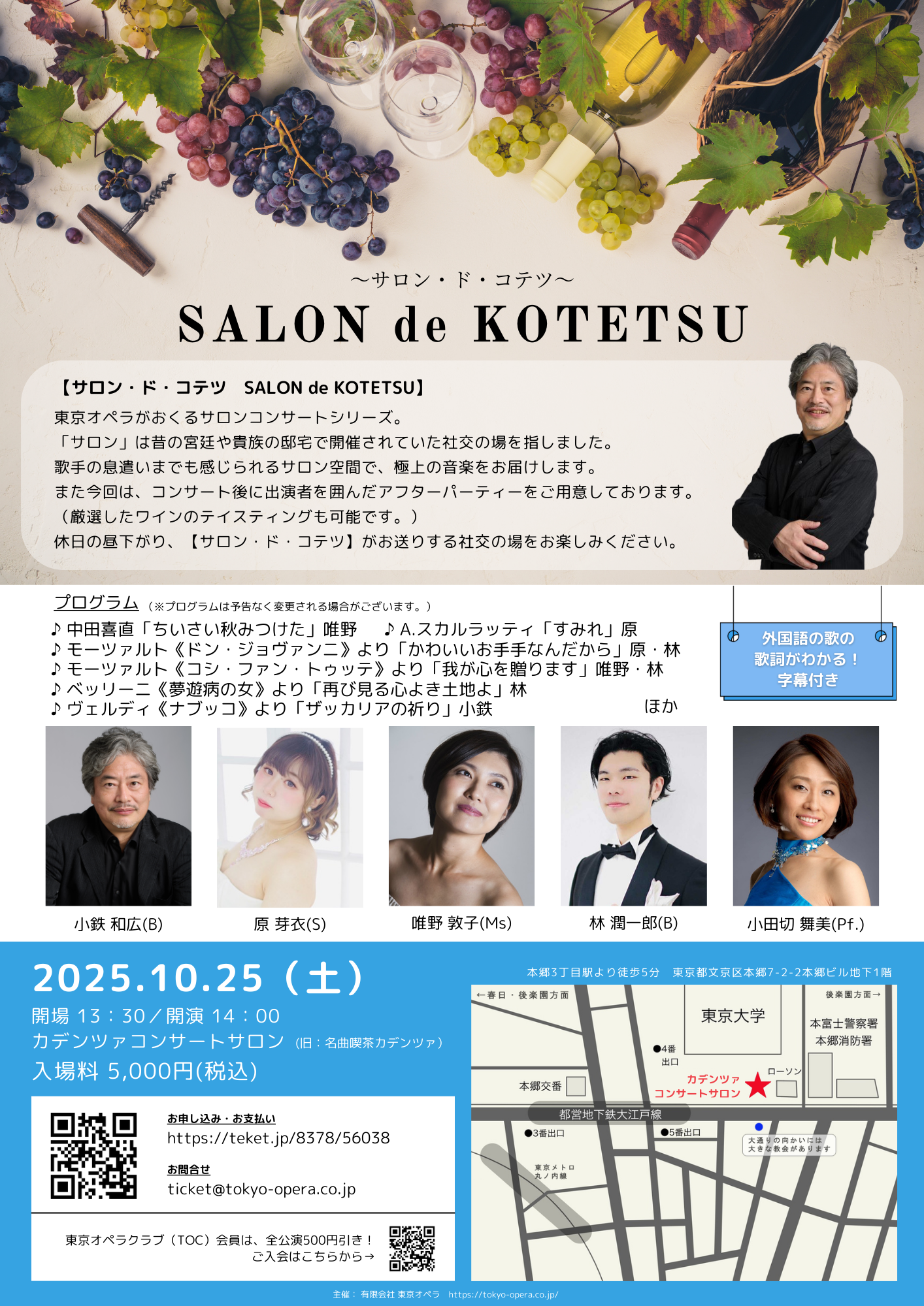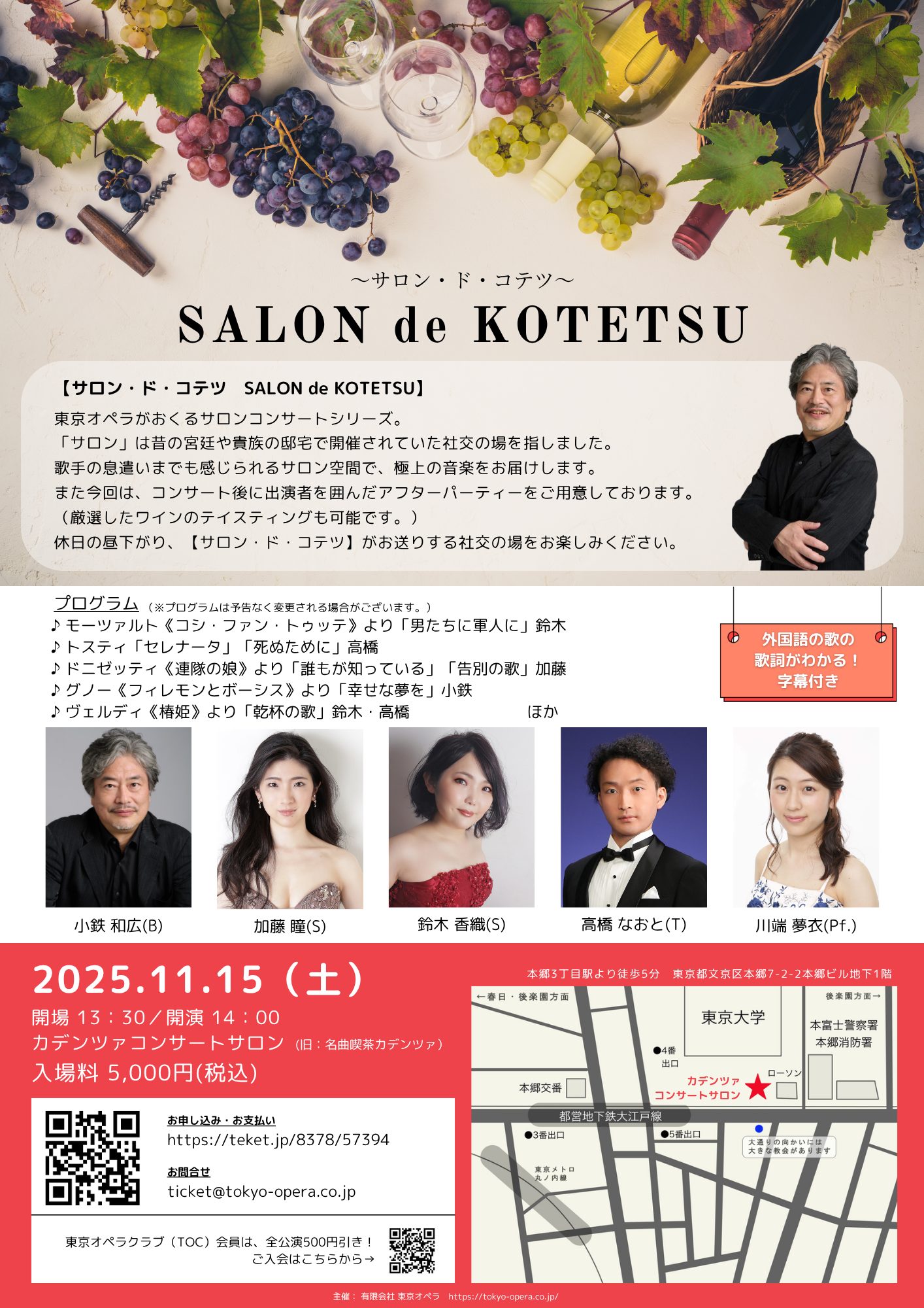素敵な音楽とワインの2つをお楽しみいただける、東京オペラのサロンコンサートシリーズ